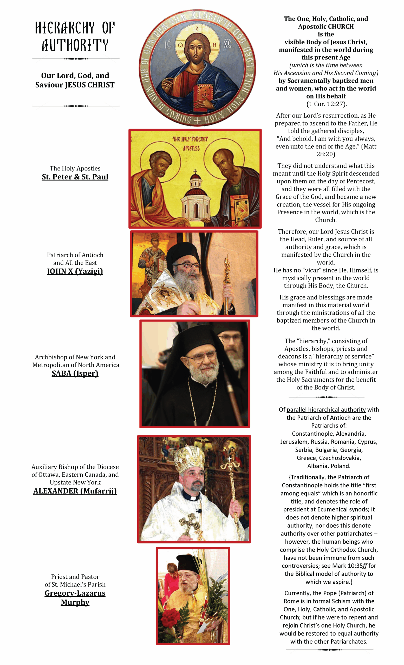 HIERARCHY of the NORTH AMERICAN ARCHDIOCESE